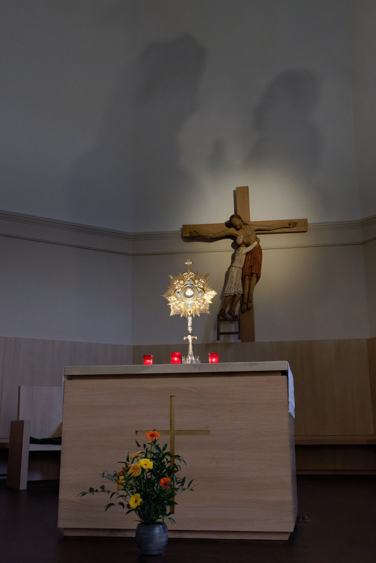L’adoration eucharistique est proposée du mardi au samedi, dans la Chapelle de la Confiance, selon les horaires: